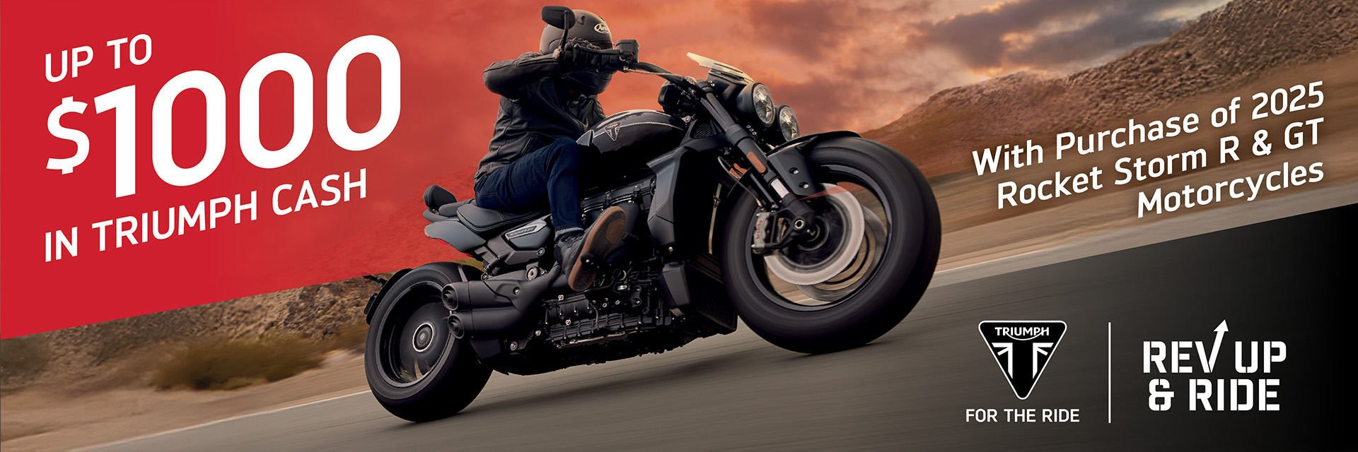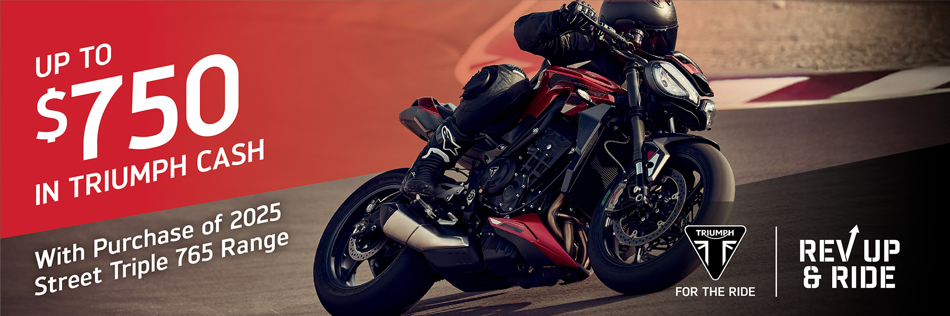 The Rev Up & Ride promotion offers robust incentives for riders to start their riding season on a new Triumph motorcycle, with cash offers and low financing rates.